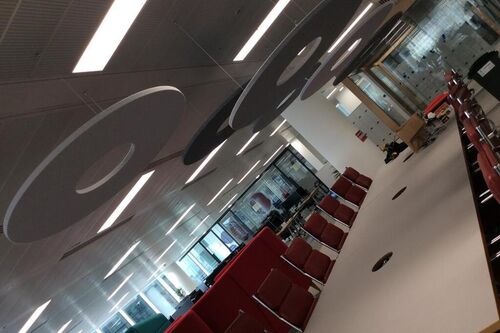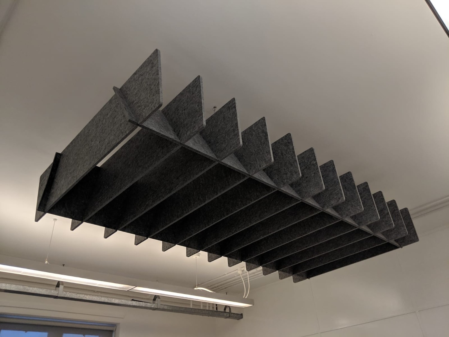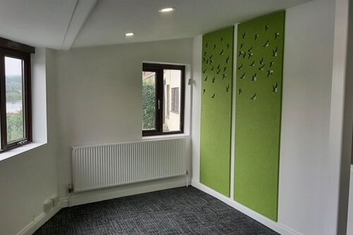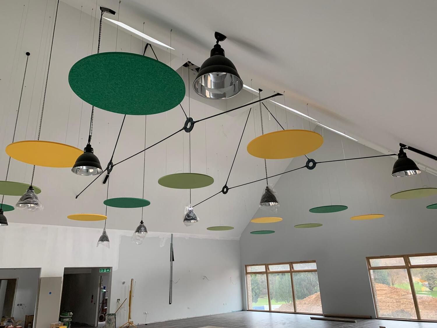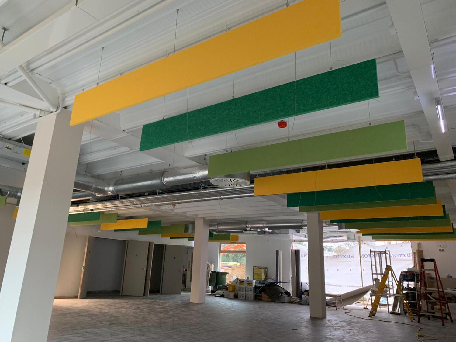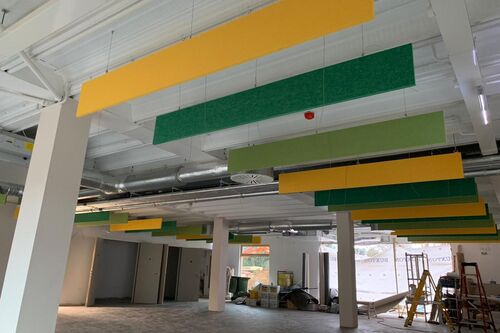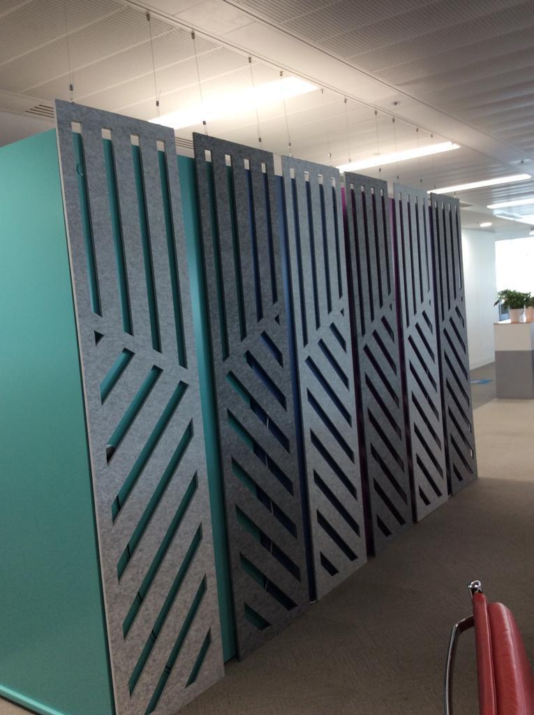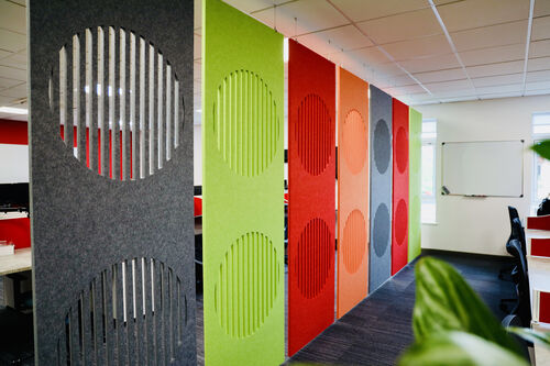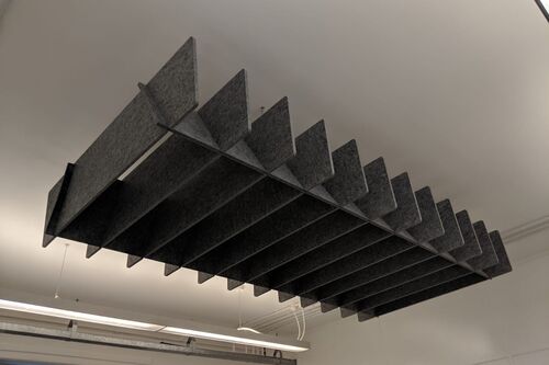 Anything you desire to control reverberant sound - From ceiling baffles to rafts, hanging vertical screens or wall panels with cut outs, suspended booths, room dividers…