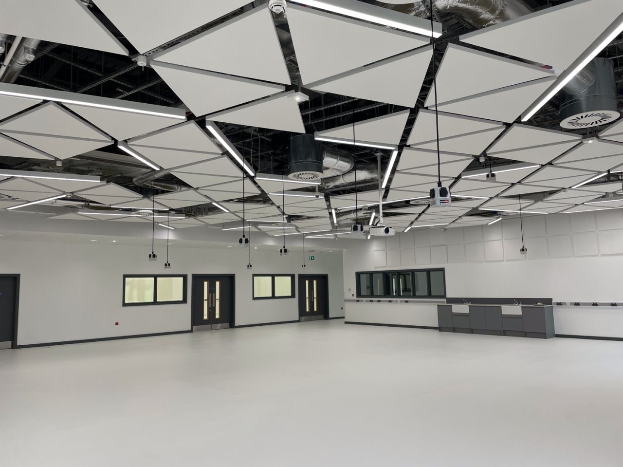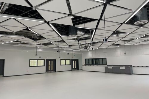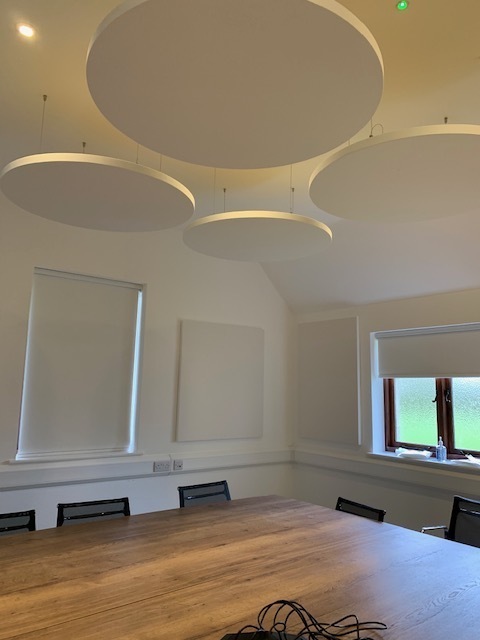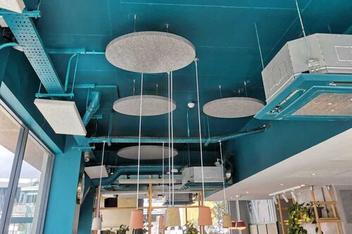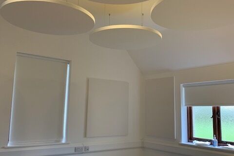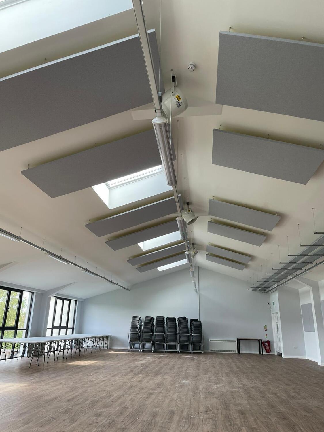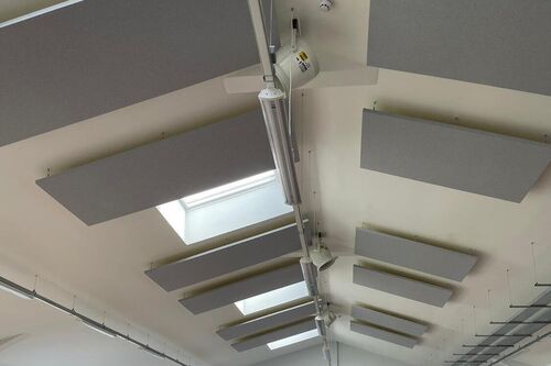High ceilings and / or exposed soffits create ideal areas for sound to reverberate around a space.